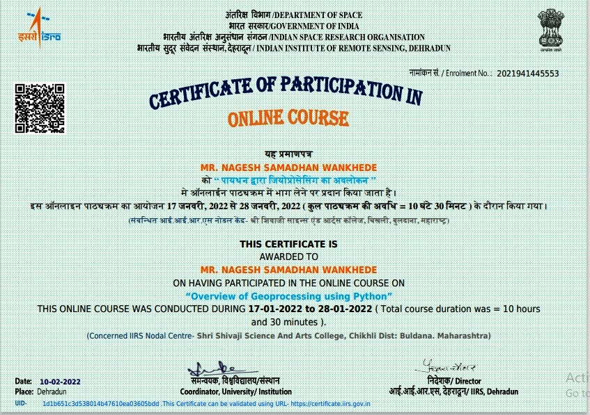 Institute Certificate